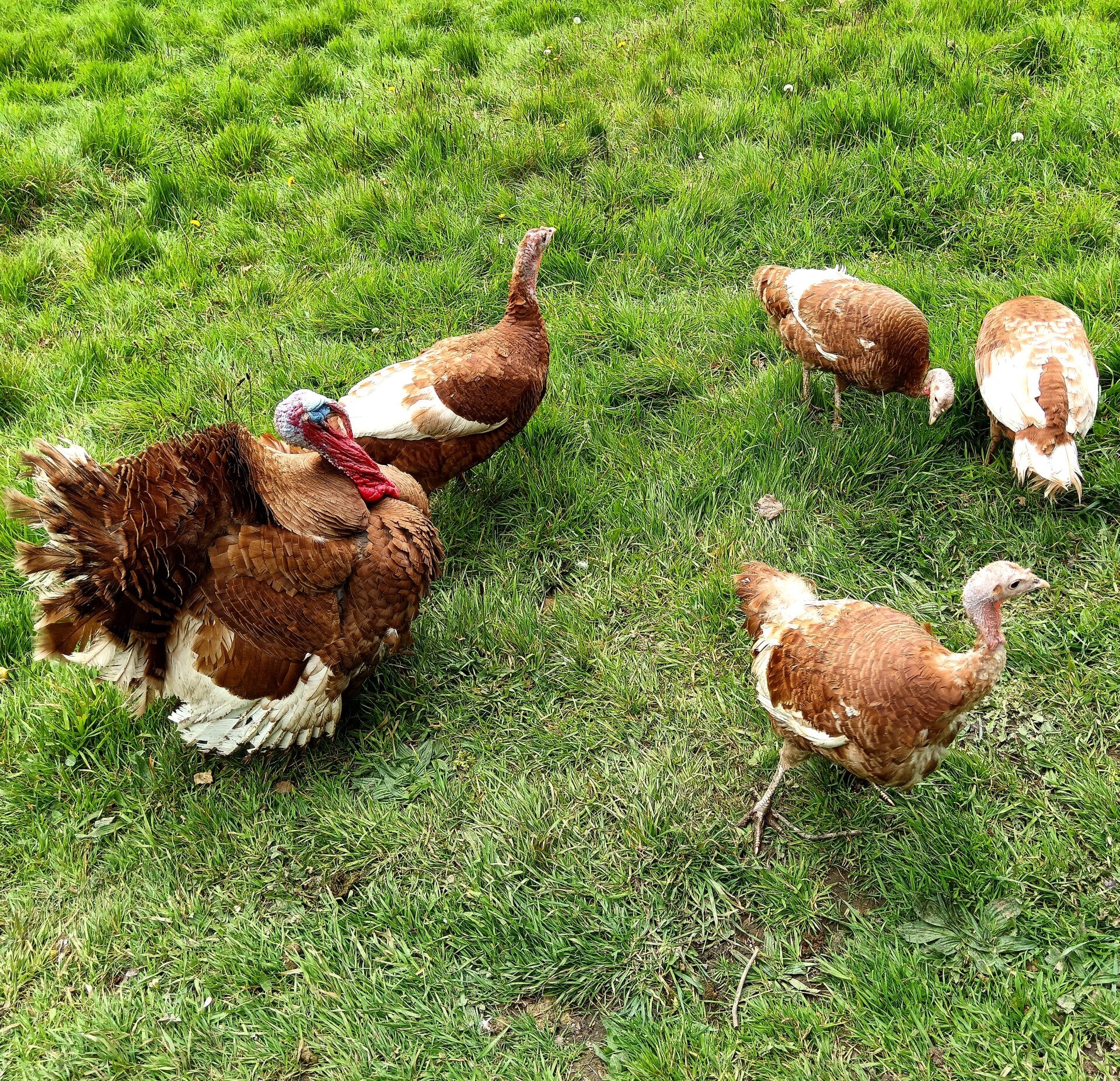 We also have some top quality Bourbon Red turkeys, a heritahe breed which has striking reddish-brown plumage.